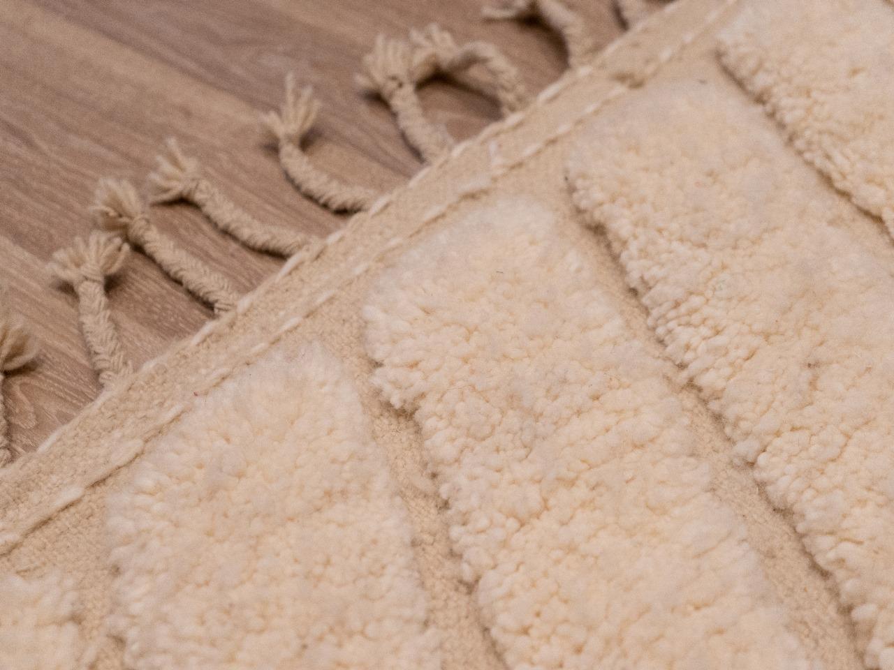 Les tapis beni ouarain sont prisés pour leur charme intemporel, leur gaieté et leur qualité exceptionnelle. Ils se marient aussi bien avec un intérieur moderne qu’avec une décoration plus traditionnelle. Les légères variations de couleur et petites imperfections témoignent de l’authenticité de chaque pièce, ajoutant du caractère unique à votre décoration et distinguant ces tapis des produits industriels.